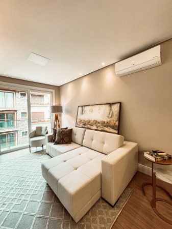 Belíssimo apartamento mobiliado e equipado. Equipamentos de altíssima qualidade fazem parte deste extraordinário conjunto. Perfeito para quem busca implementar a renda mensal com a locação por temporada, ou habitar com muito conforto e qualidade. Sacada com vista para uma Cascata, com som característico de água permanentemente.